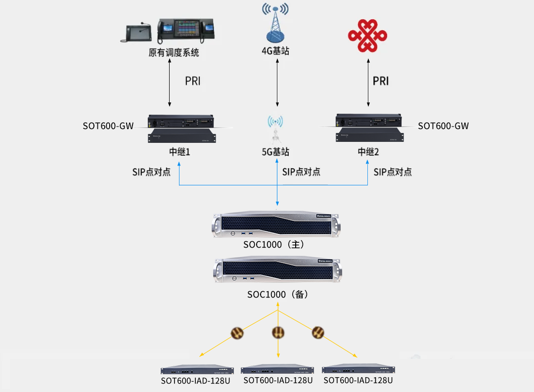 2.采用E1中繼網(wǎng)關(guān)分別與聯(lián)通運(yùn)營商和現(xiàn)有調(diào)度系統(tǒng)進(jìn)行對接。